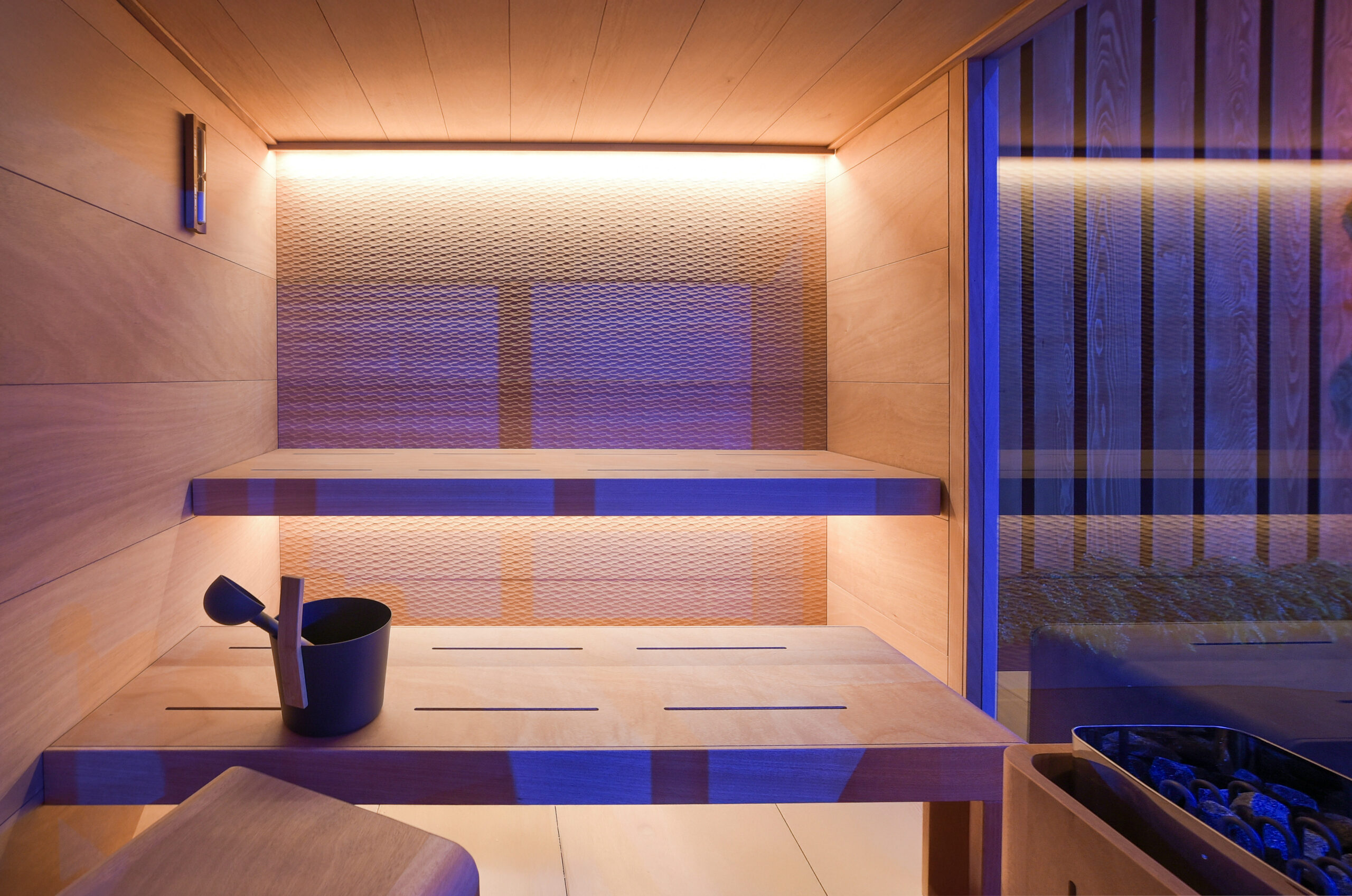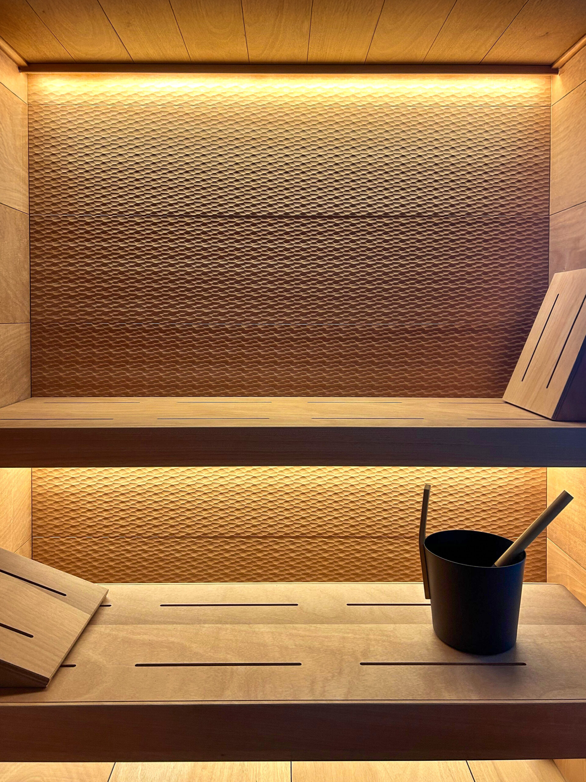 BUCCY è una sauna che nasce dall’incontro tra artigianalità Made in Italy e design contemporaneo. Le linee pulite e l’illuminazione calda creano un’atmosfera intima e raffinata, pensata per trasformare ogni momento in un rituale di benessere. Il legno di Okumè marino, resistente e dal tono naturale, avvolge gli interni con un senso di equilibrio e armonia.