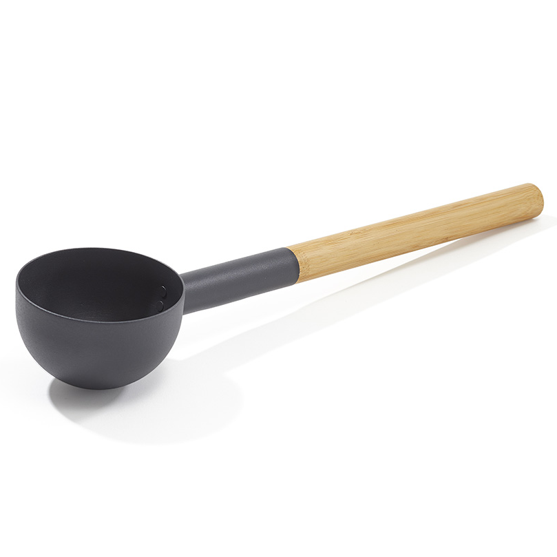 Precisione del Gesto: Il mestolo è bilanciato per raccogliere la quantità esatta d’acqua e versarla sulle pietre con controllo assoluto, evitando schizzi accidentali grazie alla forma ergonomica del cucchiaio.