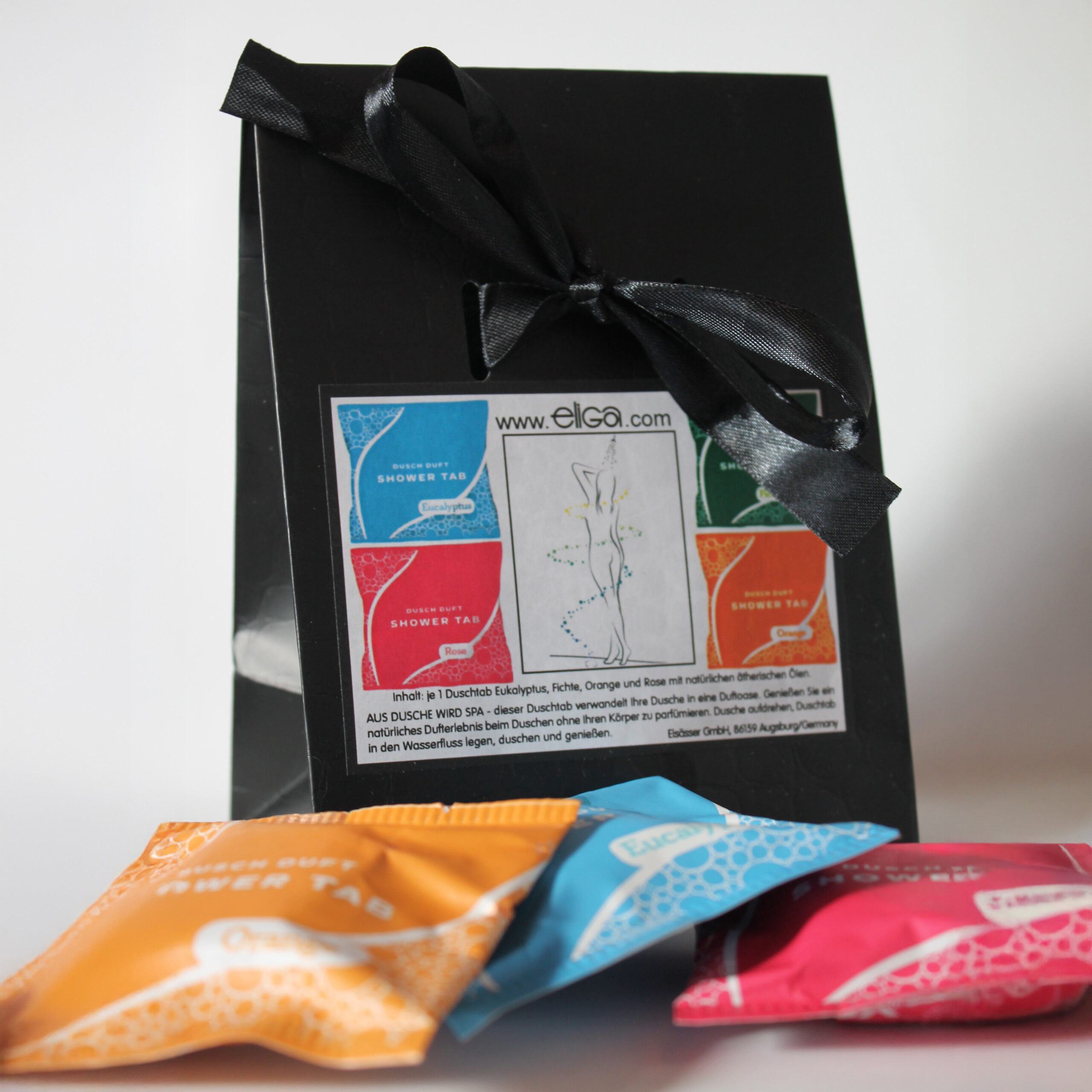 KIT Shower Tabs – Arancia, Rosa, Abete ed Eucalipto – ELIGA