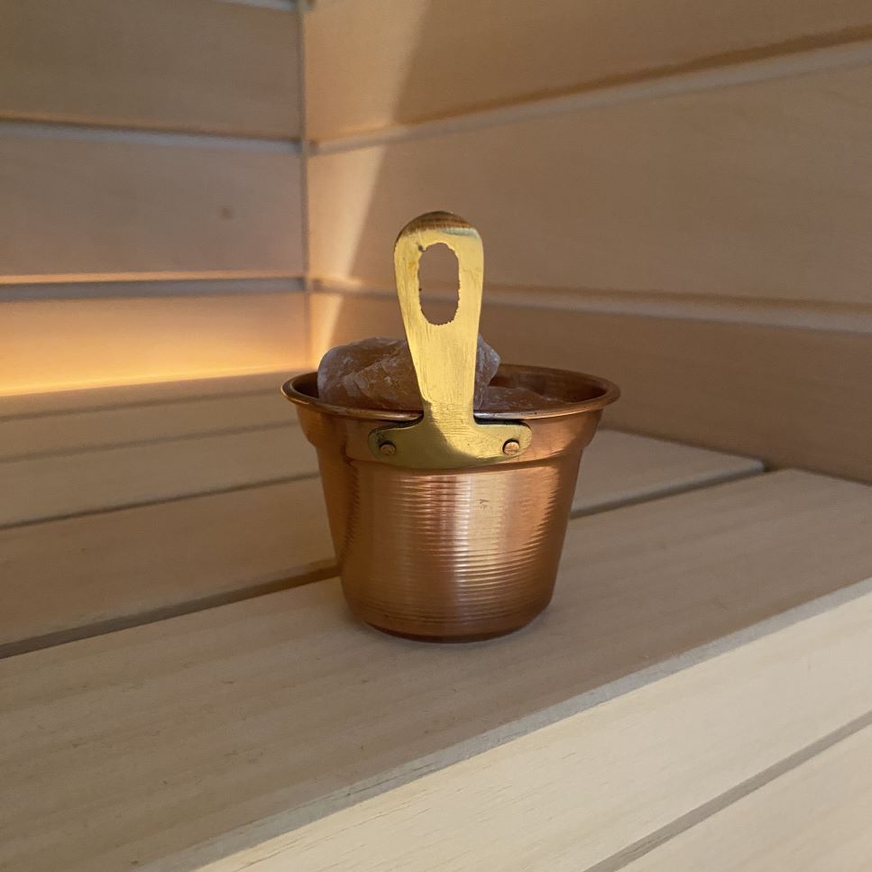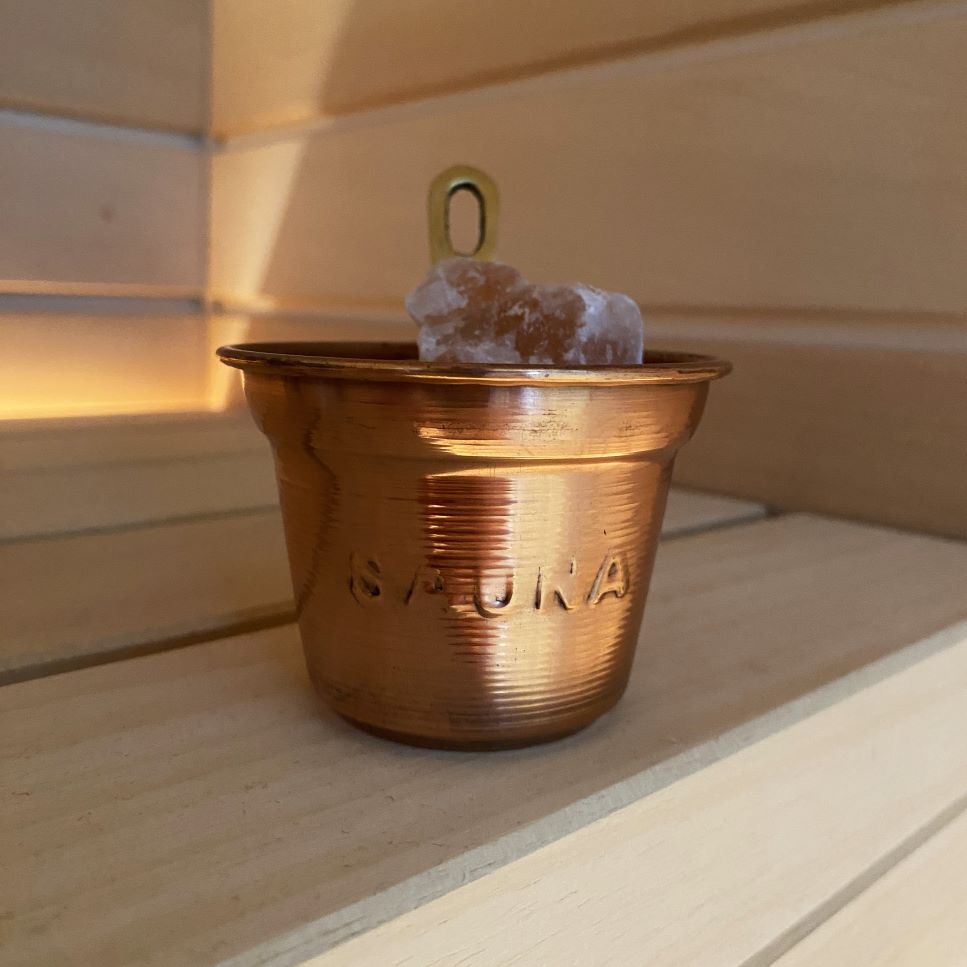 Rendi le tue sessioni di sauna ancora più autentiche e rilassanti con questa coppa di sale  in rame, contenente cubetti di sale himalayano naturale. Questo accessorio elegante e funzionale è pensato per arricchire l’atmosfera della sauna, offrendo benefici purificanti e un tocco di stile unico. Il vapore purifica l’aria e allevia i sintomi allergici.